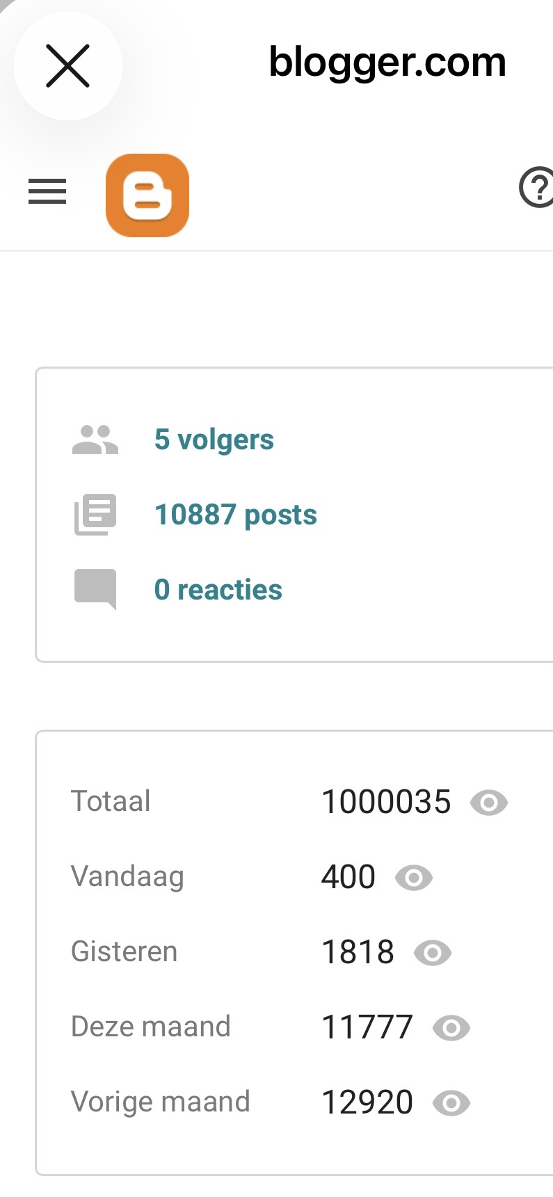 ​Dit is een bescheiden weblog. Toch heb ik nu meer dan 1 miljoen unieke bezoekers gehad over de tijd genomen.