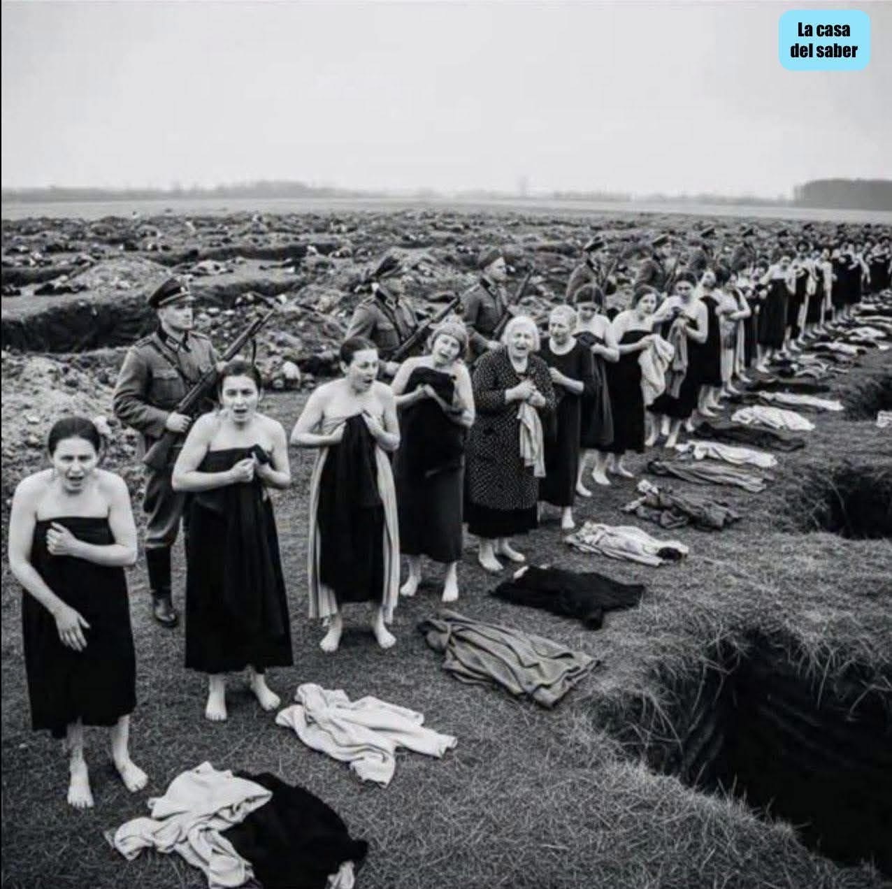 Er gaan steeds meer foto’s rond van de Shoa in AI. De joodse vrouwen van Babi Jar dragen een keurige handdoek voor hun naakte lichaam. Want je kunt alles van de Nazi’s zeggen maar niet dat ze onfatsoenlijk waren.